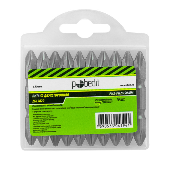 Бита двухсторонняя PH2-PH2x50 мм,S2,Pobedit