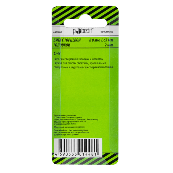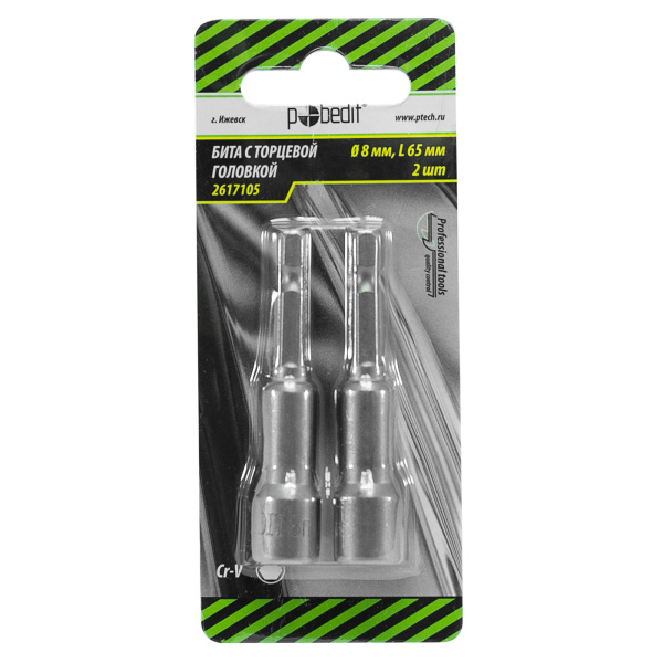 2 шт/уп, Бита с торцевой головкой, 8*65 мм, CrV, POBEDIT