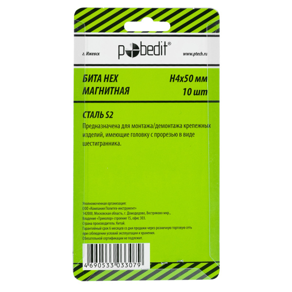 Бита HEX H4, 50mm, S2, Pobedit