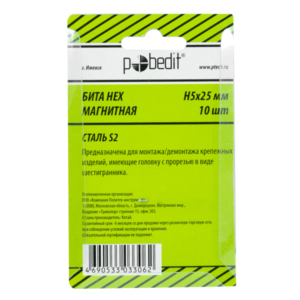 Бита HEX H5, 25mm, S2, Pobedit