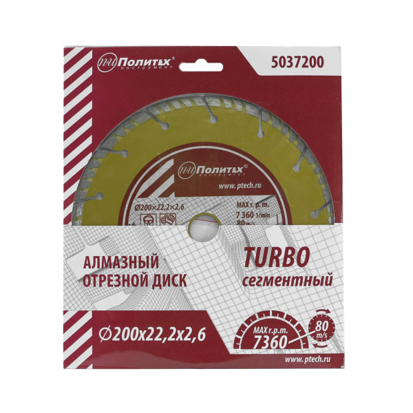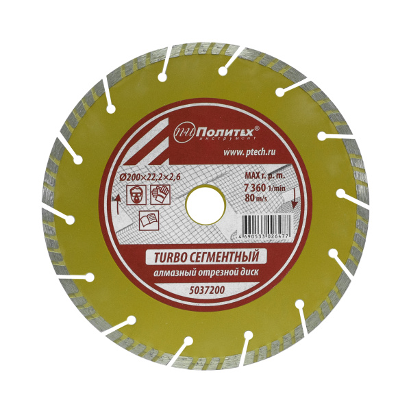 Диск отрезной алмазный по камню Turbo-СЕГМЕНТ 200х22,2х2,6 Политех