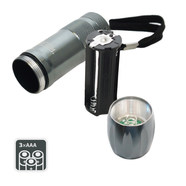 Фонарь ручной светодиодный, 9LED, 3хААА, металл