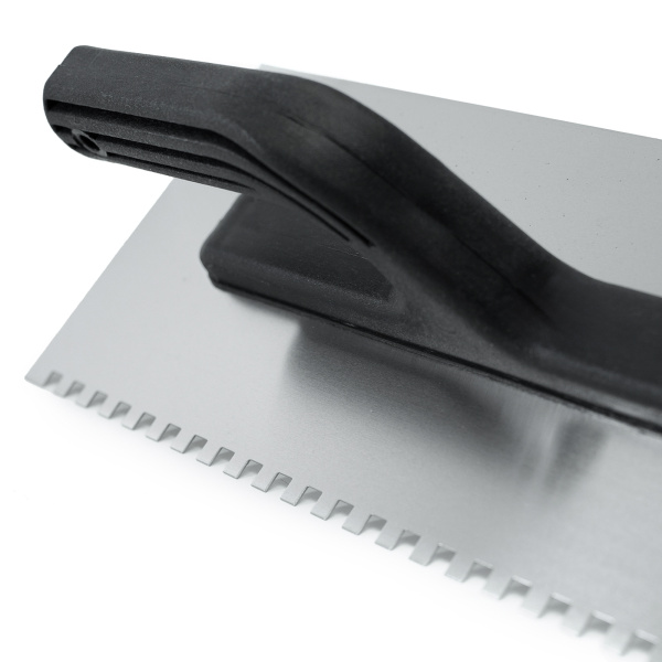 Применяется для нанесения штукатурных смесей и клеевых растворов. Имеет квадратный зуб.
