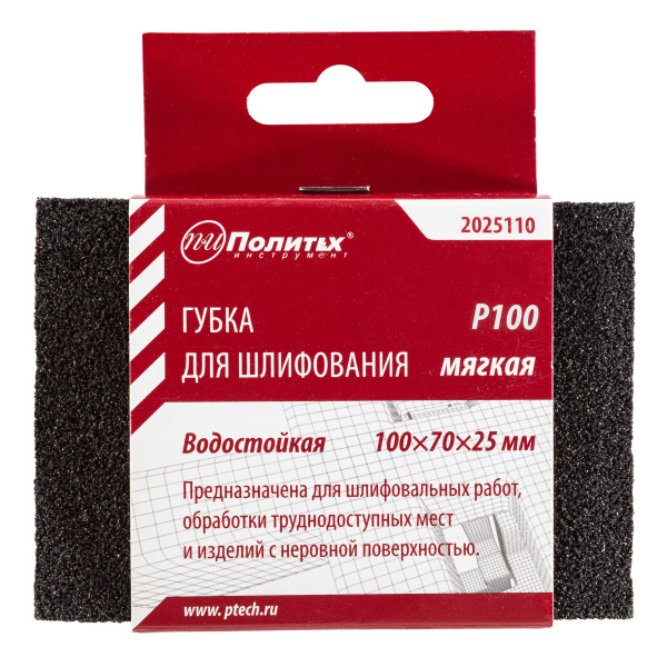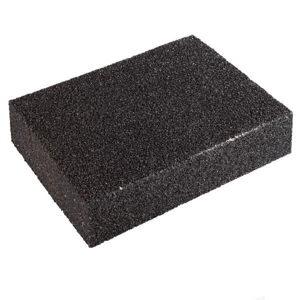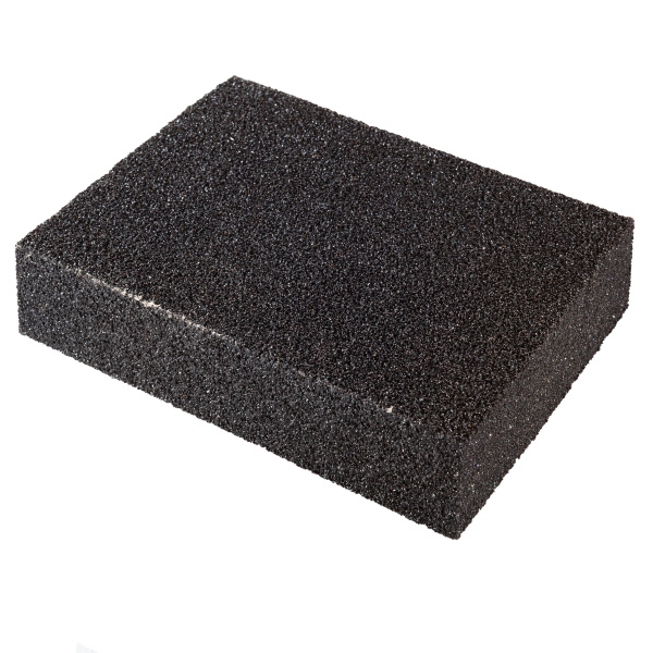 Мягкая губка, высококачественный абразив. Водостойкая. Для обработки неровных труднодоступных поверхностей. Размер 100х70х25 мм