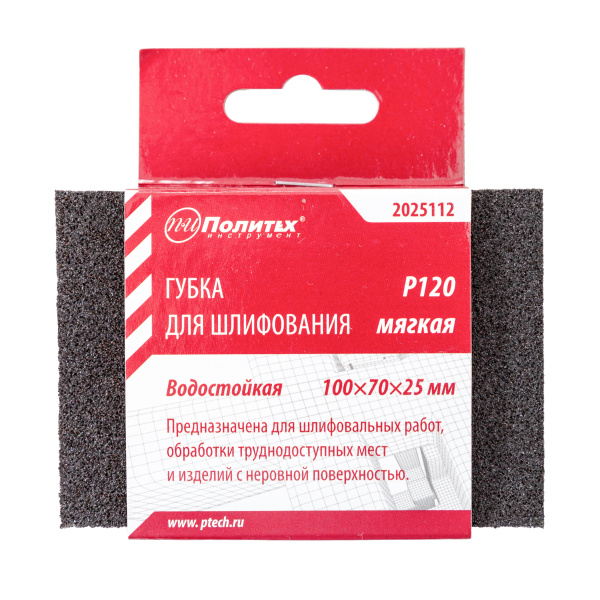 Мягкая губка, высококачественный абразив. Водостойкая. Для обработки неровных труднодоступных поверхностей. Размер 100х70х25 мм
