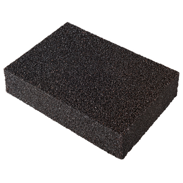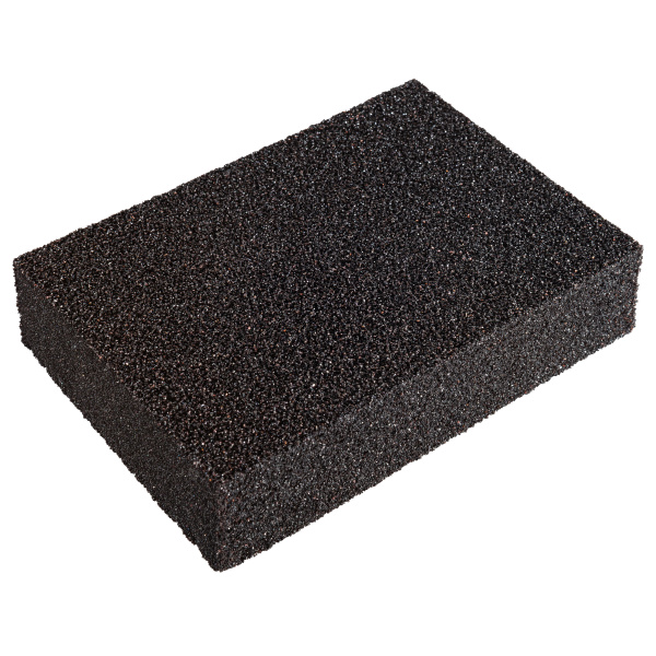 Мягкая губка, высококачественный абразив. Водостойкая. Для обработки неровных труднодоступных поверхностей. Размер 100х70х25 мм