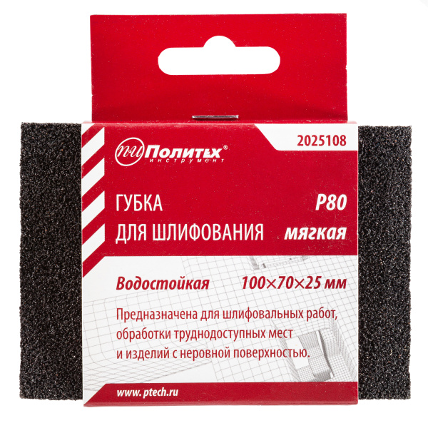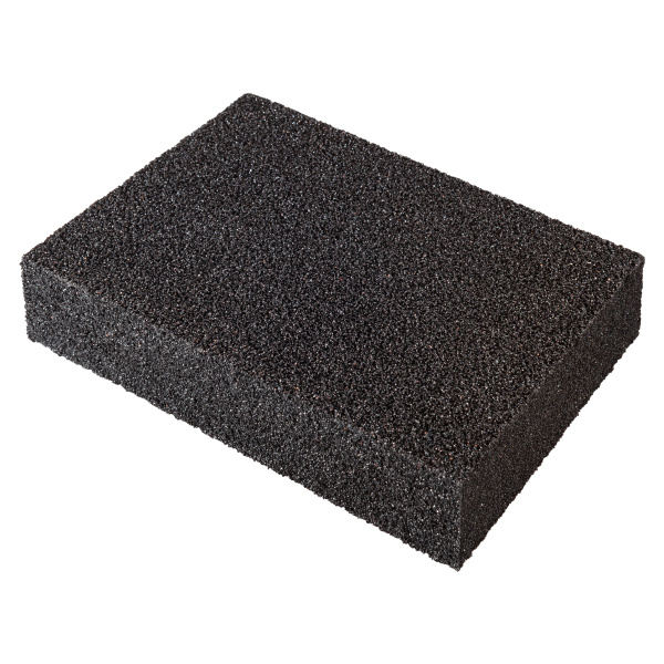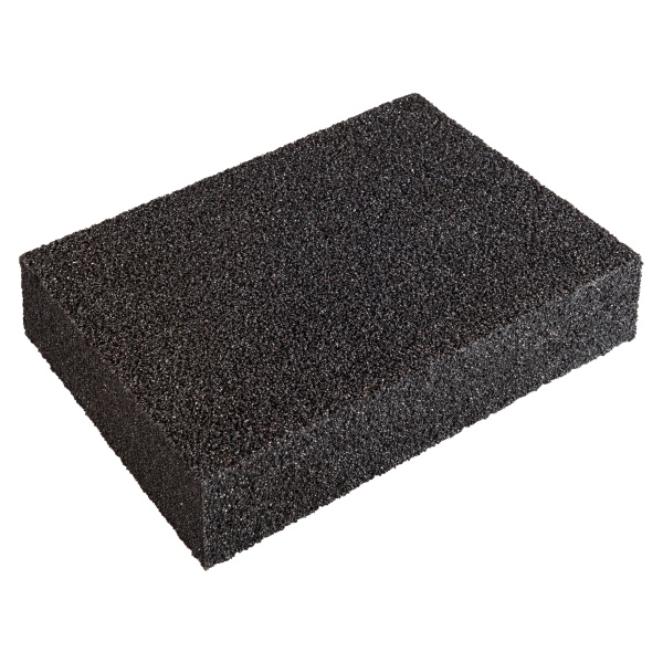 Мягкая губка, высококачественный абразив. Водостойкая. Для обработки неровных труднодоступных поверхностей. Размер 100х70х25 мм