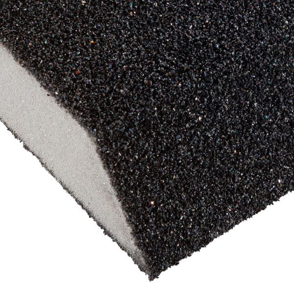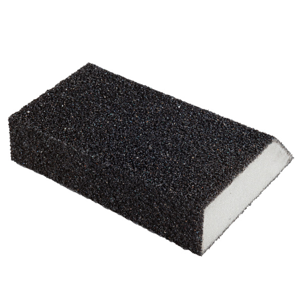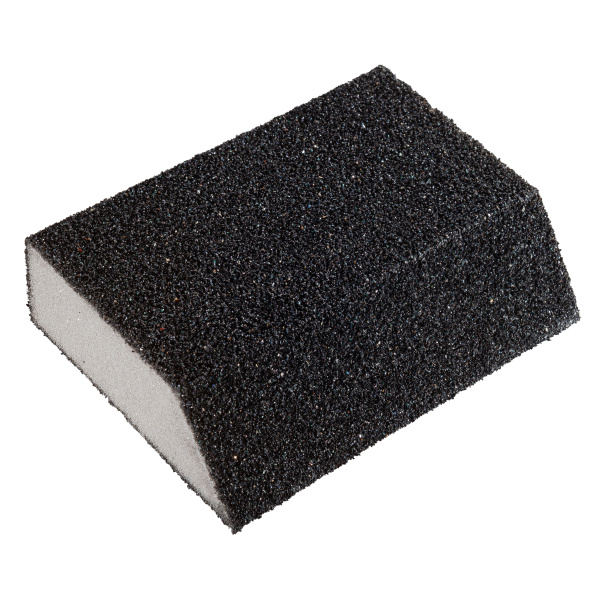 Губка средней жесткости, форма - трапеция, высококачественный абразив. Водостойкая. Для обработки неровных труднодоступных поверхностей. Размер 100х70х55х25 мм