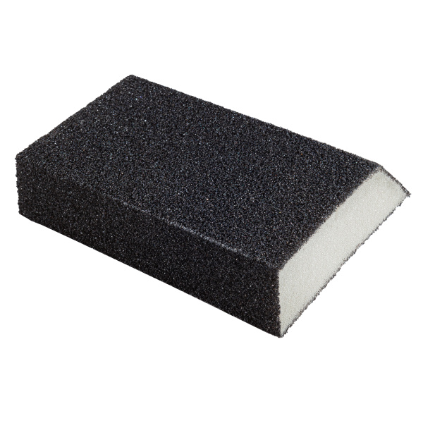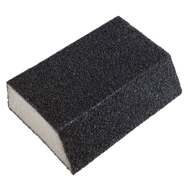 Губка средней жесткости, форма - трапеция, высококачественный абразив. Водостойкая. Для обработки неровных труднодоступных поверхностей. Размер 100х70х55х25 мм
