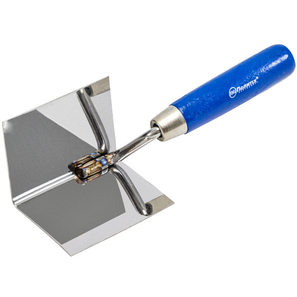 Нержавеющая сталь, деревянная ручка. Применяется при нанесении и распределении на поверхности внутренних углов штукатурно-отделочных составов.