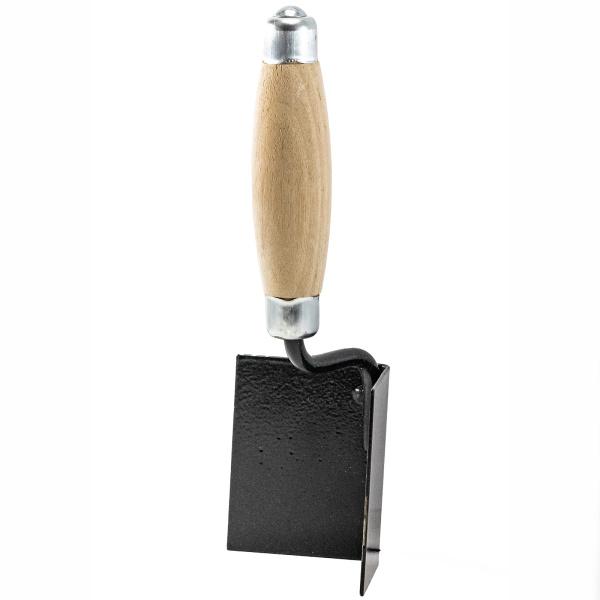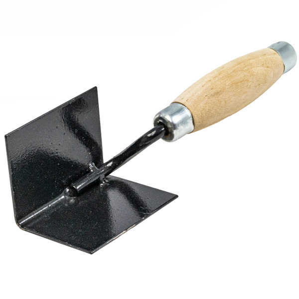 Закаленная сталь, деревянная ручка, металлический отбойник. Предназначена для нанесения штукатурных растворов и формирования внутренних углов при проведении штукатурных и отделочных работ.