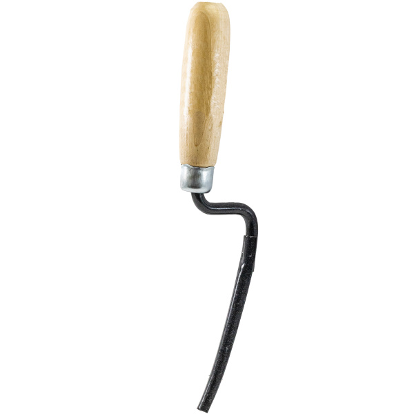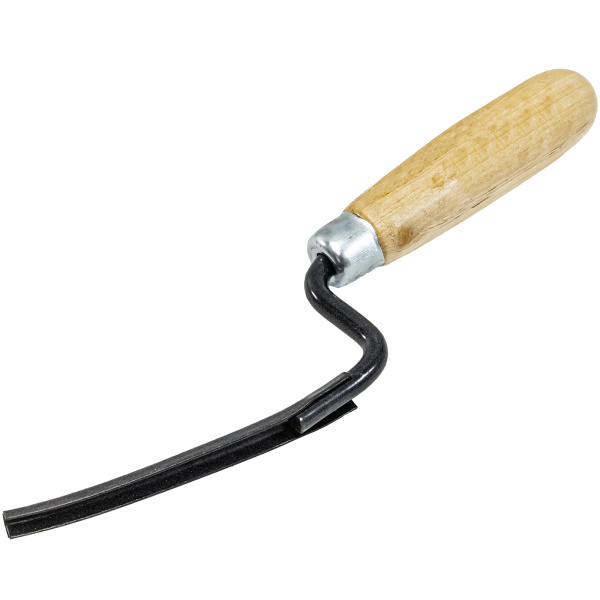 Закаленная сталь, деревянная ручка. Предназначена для выравнивания, укрепления и придания форм внешних швов во время кладки кирпича и камня.