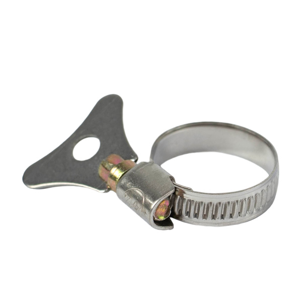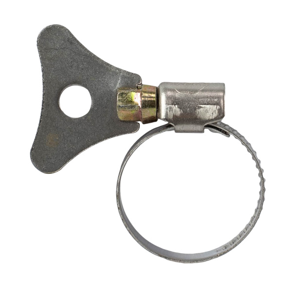 Хомут червячный из нержавеющей стали с металлическим ключом. Лента и замок сварены в одну конструкцию. Тип ленты - накатная. Предназначены для установки в труднодоступных местах без отвёртки и дополнительных инструментов. Исключает поломку ключа при затяжке. Ширина ленты — 9 мм.