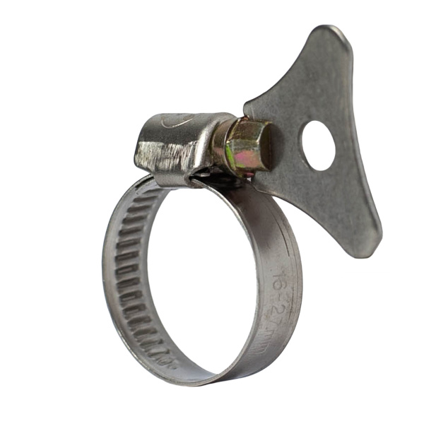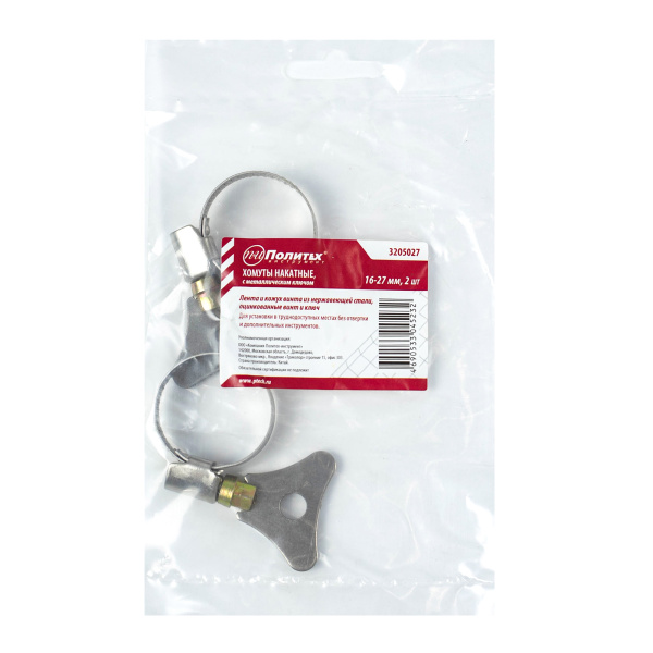 Хомуты червячные накатные с металлическим ключом, нерж. сталь, 2 шт./уп., 16-27 мм