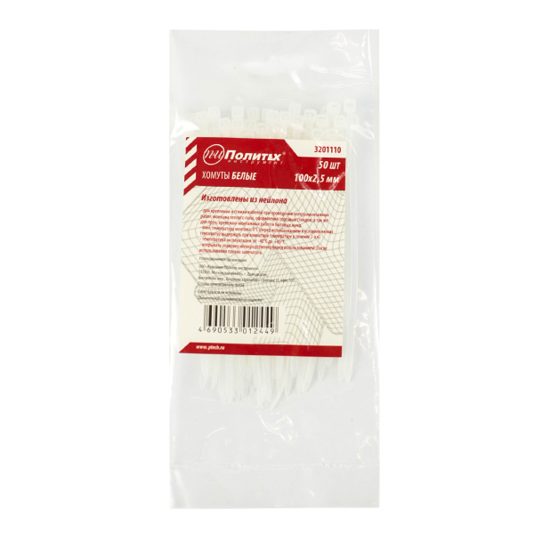 Хомуты нейлоновые белые 100 х 2,5 мм уп.50шт
