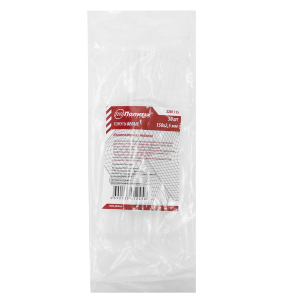 Хомуты нейлоновые белые 150 х 2,5 мм уп.50шт