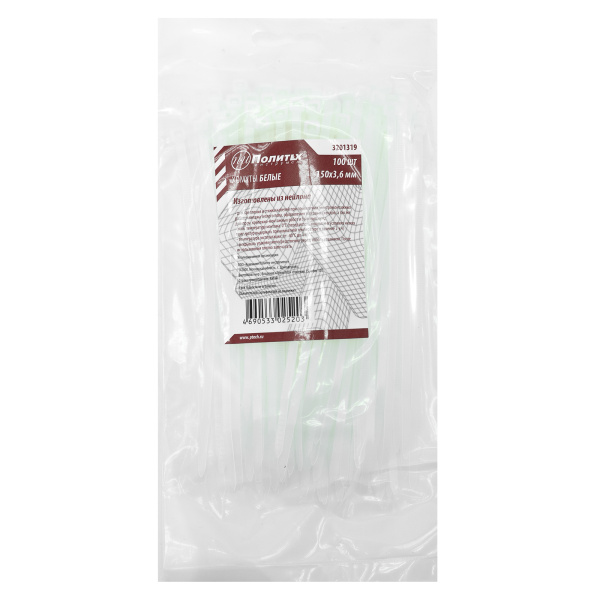 Хомуты нейлоновые белые 150 х 3,6 мм уп.100шт