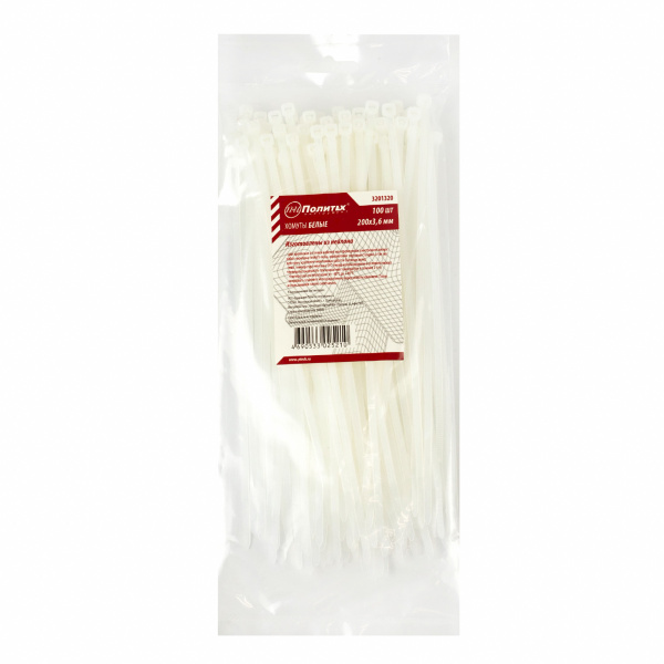 Хомуты нейлоновые белые 200 х 3,6 мм уп.100шт