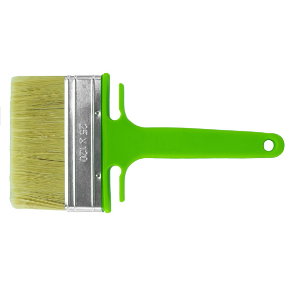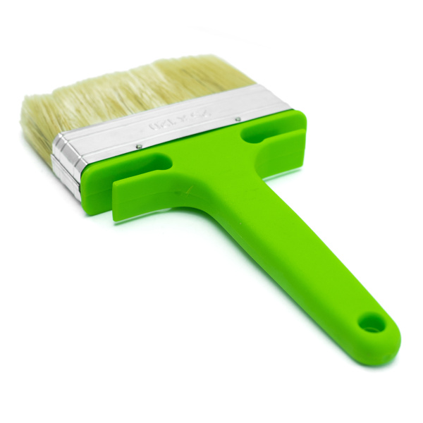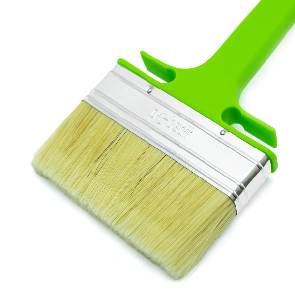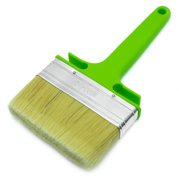 Высококачественная натуральная щетина. Специальный крепеж на банку краски.Клинья и клеевой рецепт фиксирует щетину.