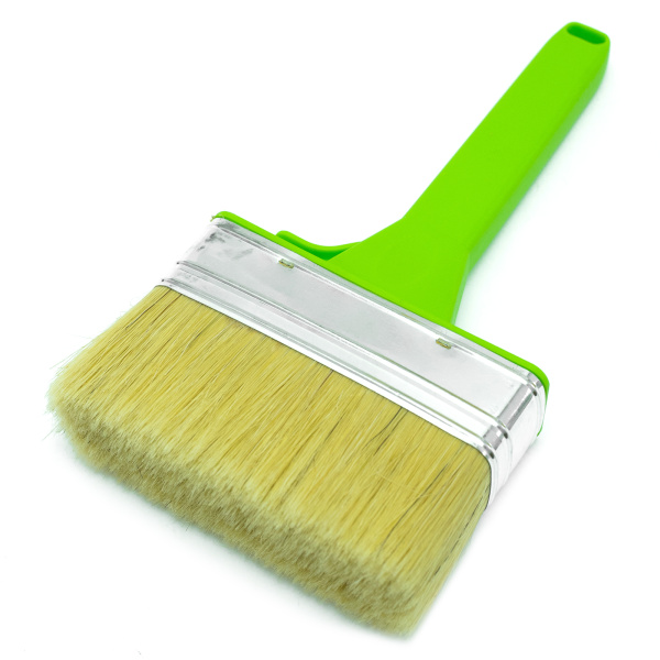 Высококачественная натуральная щетина. Специальный крепеж на банку краски.Клинья и клеевой рецепт фиксирует щетину.