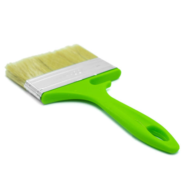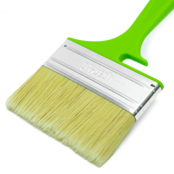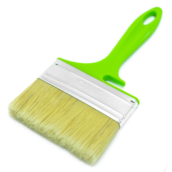 Высококачественная натуральная щетина. Специальный крепеж на банку краски.Клинья и клеевой рецепт фиксирует щетину.