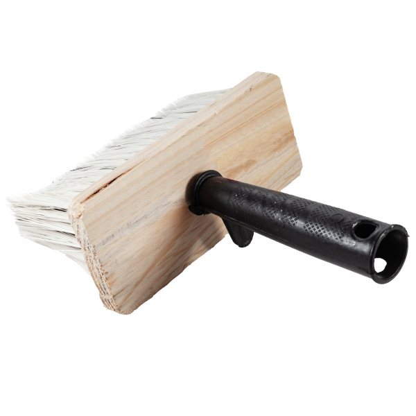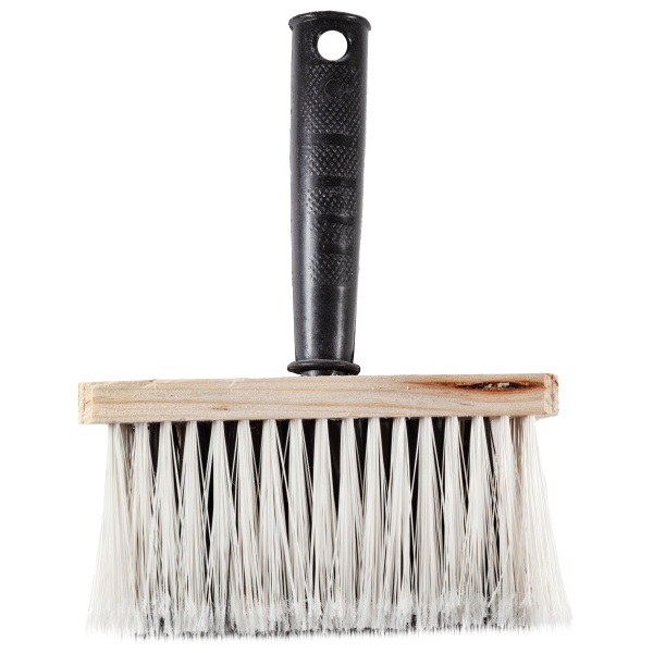 Изготовлена из искусственной щетины, ТОПС 90%. Рукоятка из пластика, корпус деревянный.