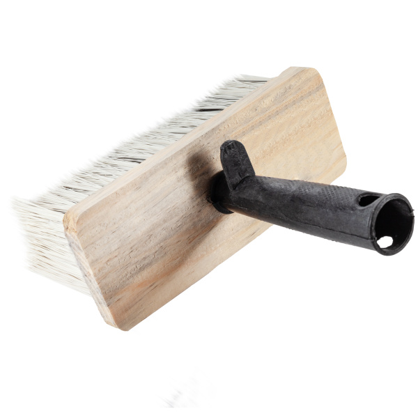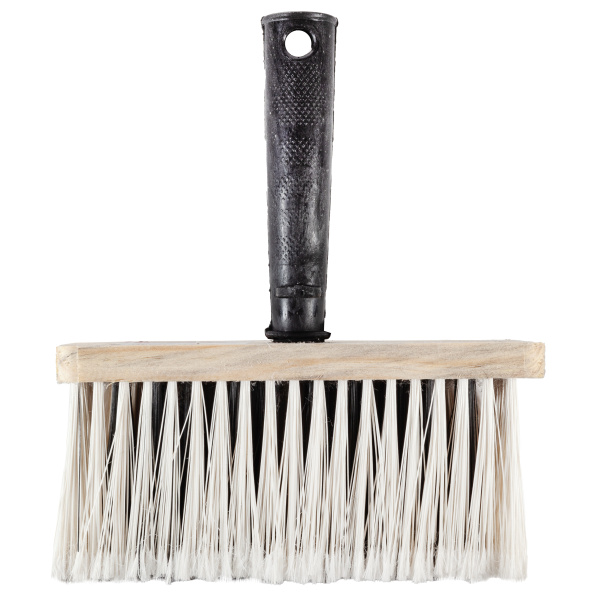 Изготовлена из искусственной щетины, ТОПС 90%. Рукоятка из пластика, корпус деревянный.