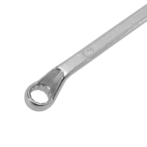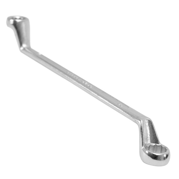 Упрочненная углеродистая сталь c хромированным покрытием, твёрдостью 45 HRс. Предназначен для закручивания и откручивания гаек, болтов и т.д. Ключ имеет 2 кольцевых зева разного размера.