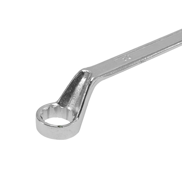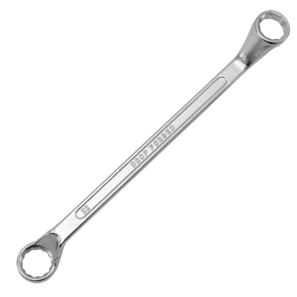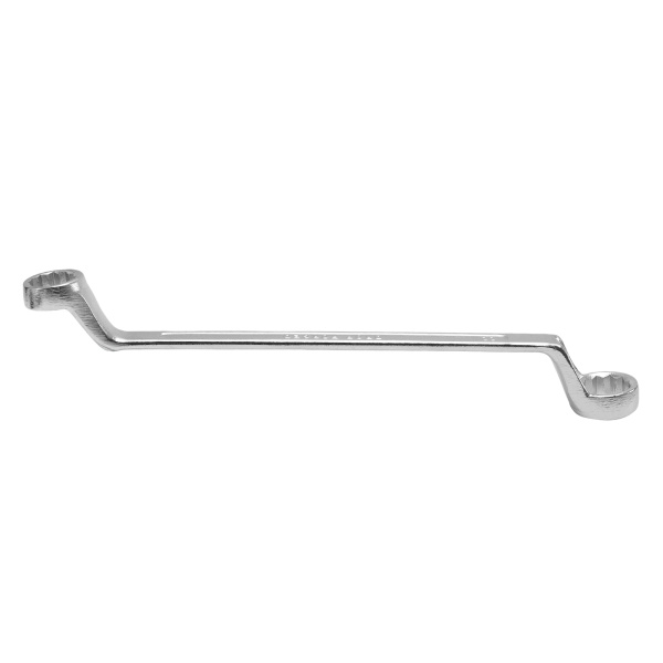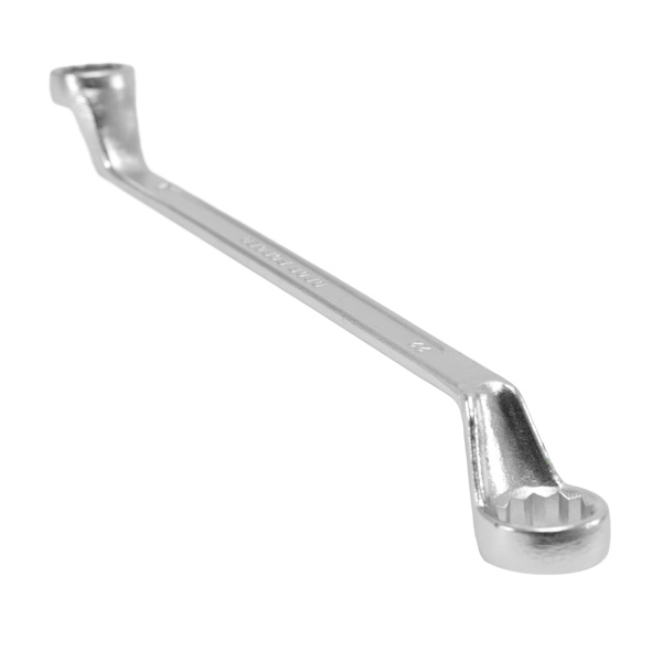 Упрочненная углеродистая сталь c хромированным покрытием, твёрдостью 45 HRс. Предназначен для закручивания и откручивания гаек, болтов и т.д. Ключ имеет 2 кольцевых зева разного размера.