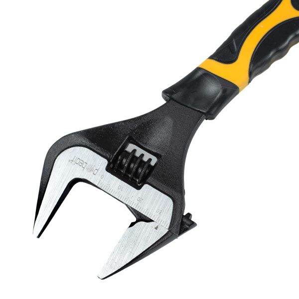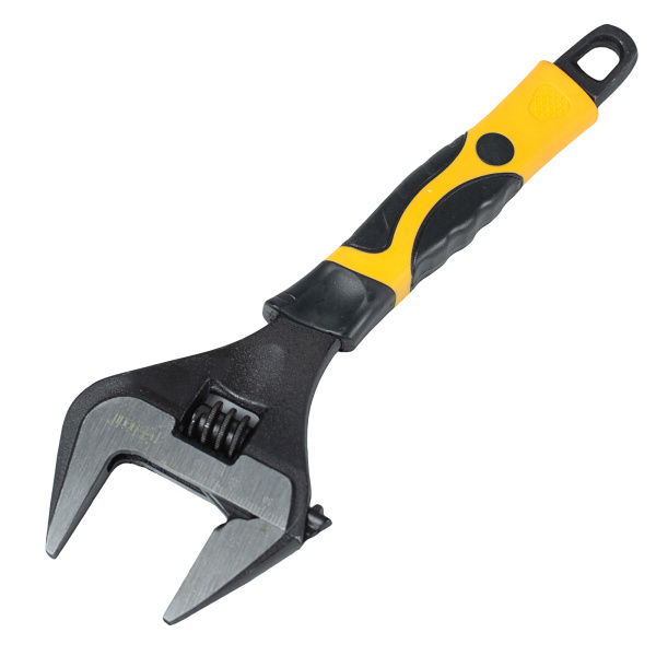 Изготовлен из высокоуглеродистой стали с фосфатированным покрытием. Тонкие губки и увеличенный зев для удобства работы. Двухкомпонентная рукоятка.