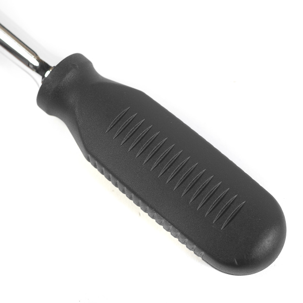 Механизм с флажковым переключателем, кнопка блокировки шарикового фиксатора. Шариковый фиксатор надежно удерживает съемные торцевые головки. Crv с зеркальным покрытием.