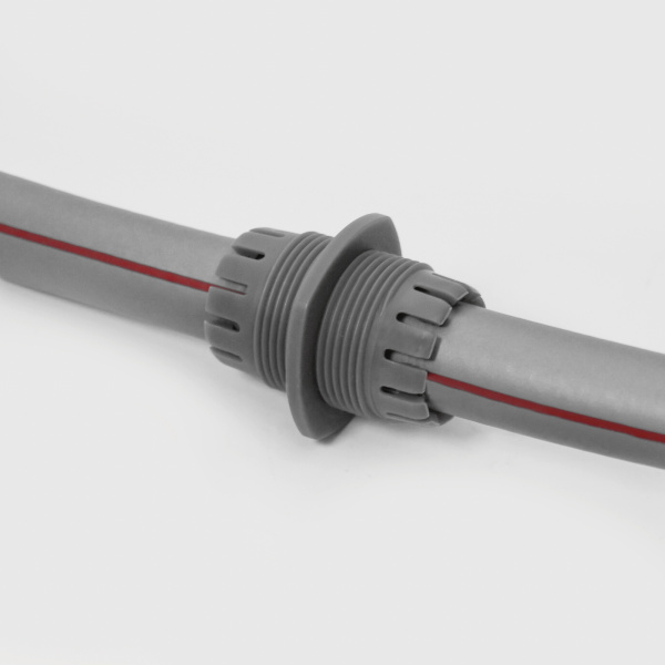Из АБС-пластика.Применяется для быстрого и надежного соединения (удлинения) двух шлангов одинакового диаметра.