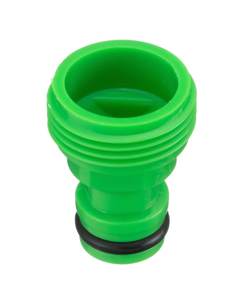 Из АБС-пластика. Выступает в роли переходника между водопроводной трубой или краном с внутренней резьбой и соединителем, в котором есть вход для штуцера 5/8.