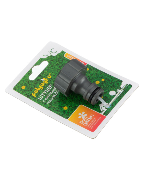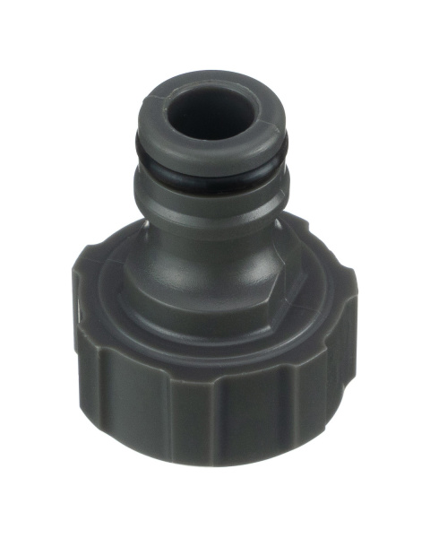 Из АБС-пластика. Выступает в роли переходника между вопроводной трубой (краном) с внешней резьбой и соединителем, в котором есть вход для штуцера 5/8.