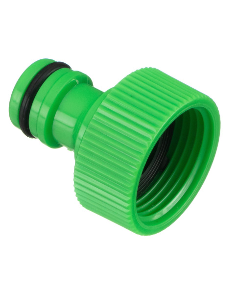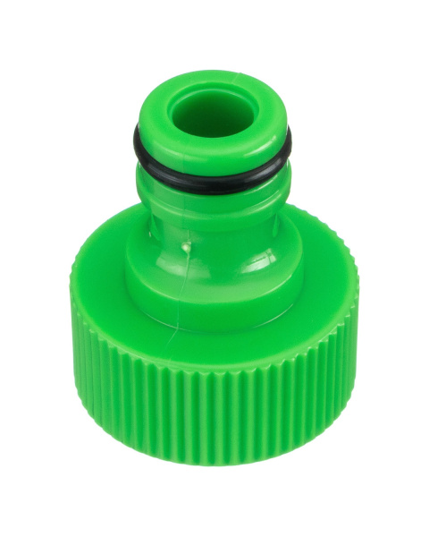Из АБС-пластика. Выступает в роли переходника между водопроводной трубой или краном с внешней резьбой и соединителем, в котором есть вход для штуцера 5/8.