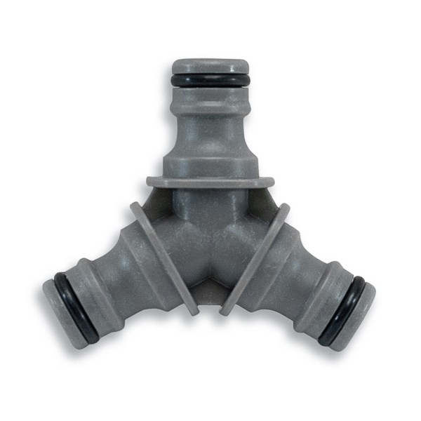 Из АБС-пластика. Позволяет соединить между собой коннекторы, в которых есть вход для штуцера 5/8. Для разветвления шланга и простого соединения шлангов различного диаметра.