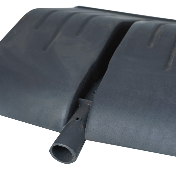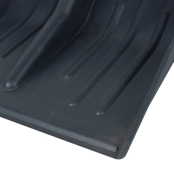 Выполнена из морозоустойчивого и ударопрочного пластика. Оцинкованная окантовка, предотвращает от повреждения пластика и быстрого износа лопаты. Под черенок ø32 мм.