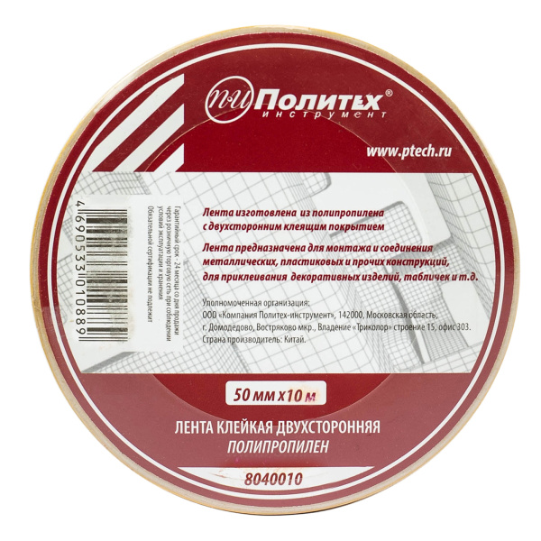 Лента клейкая двухсторонняя 50х10м полипропилен