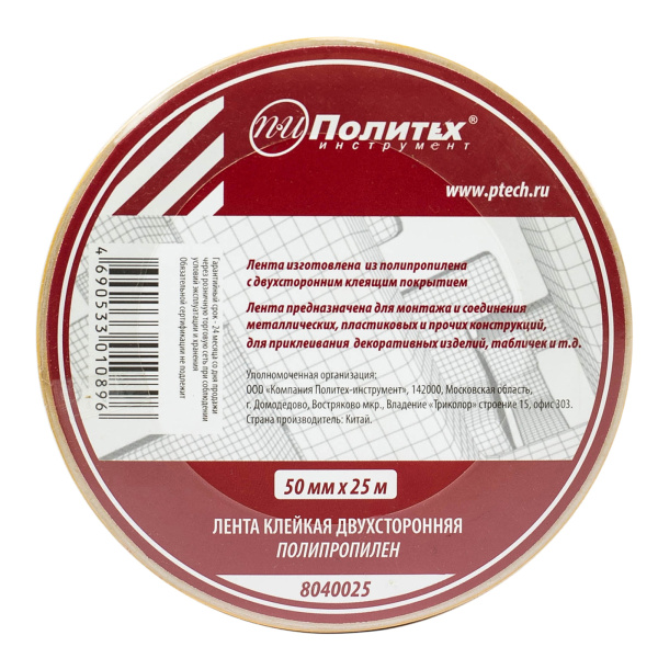 Лента клейкая двухсторонняя 50х25м полипропилен