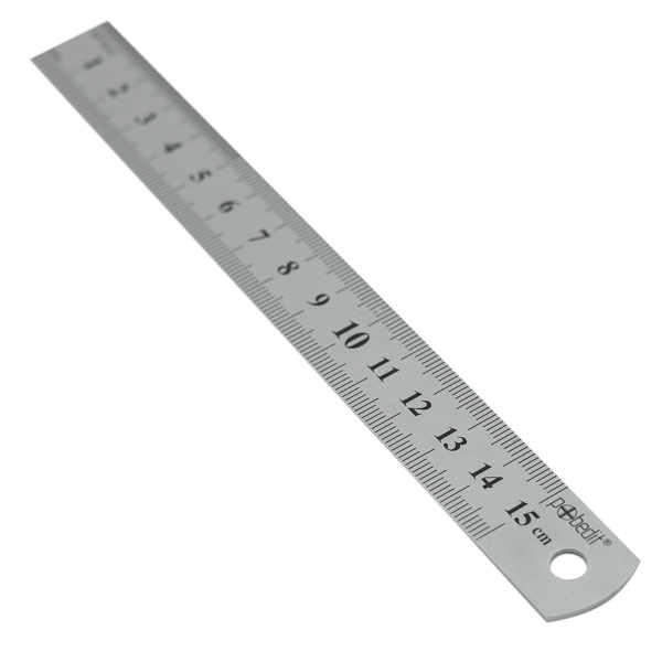 Изготовлена из нержавеющей стали. 2-сторонняя метрическая шкала выполнена методом травления. Цена деления 1мм. Для измерения и разметки линейных размеров.