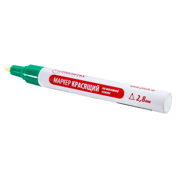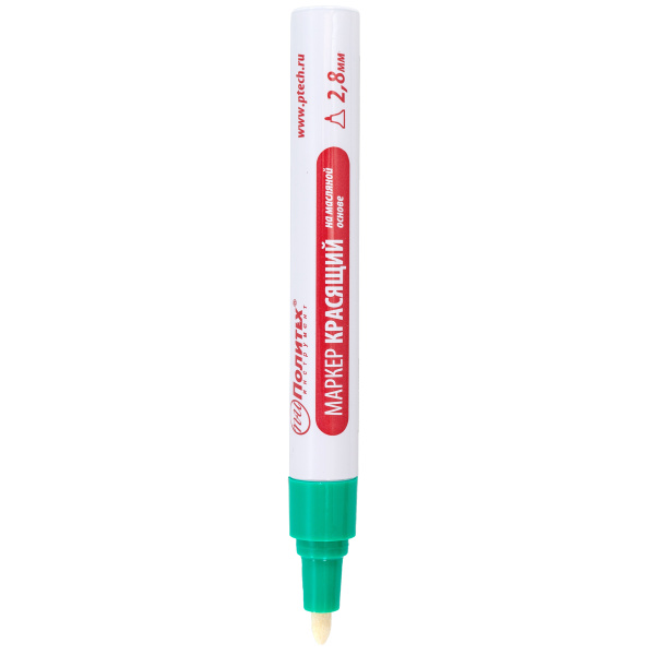 С жидким красящим составом. Применяется для нанесения разметки на большинство материалов (картон, металл, пластик, стекло и т.д.)