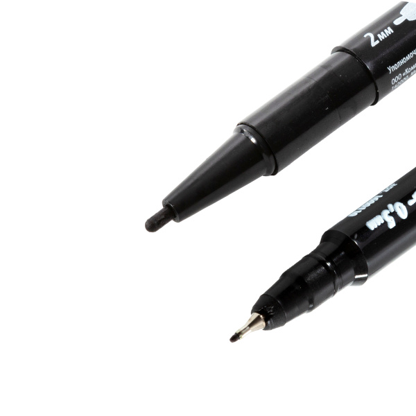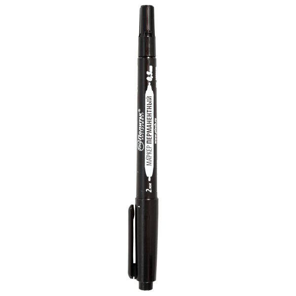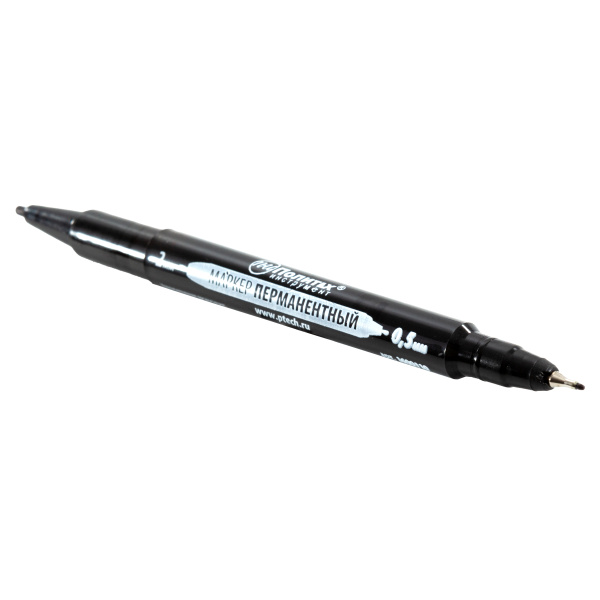 Двухсторонний перманентный маркер. Пулевидный и каппелярный наконечники 2 и 0,5 мм.
