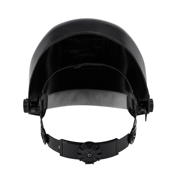 Негорючий ABS пластик, евростекло, реечное наголовное крепление. Предназначена для защиты лица и органов зрения от брызг раскаленного металла, искр и излучения дуги.