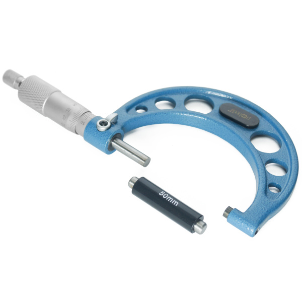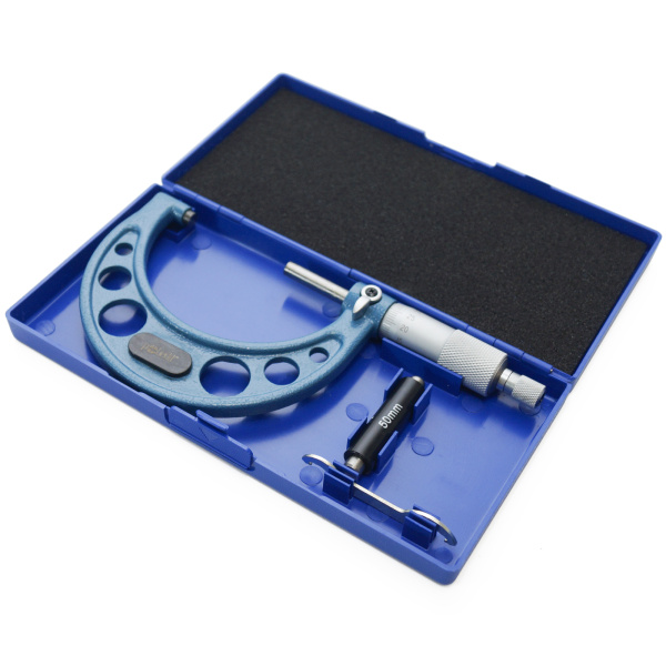 Инструментальная сталь. Имеет форму скобы. Основной рабочий элемент микрометрическая головка. Предназначен для точных измерений. Упакован в пластиковый бокс.