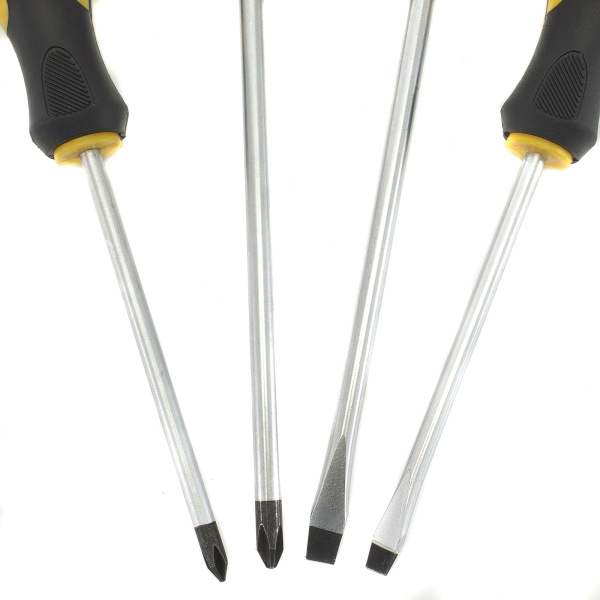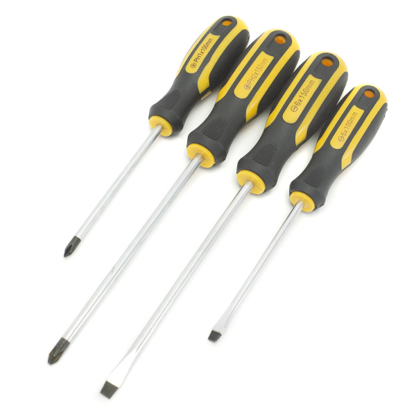 Из хром-ванадиевой стали. Двухкомпонентная рукоятка. Отверстие на ручке для удобного хранения. PH1*100, PH2*150, SL5*100, SL6*150