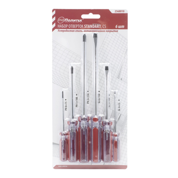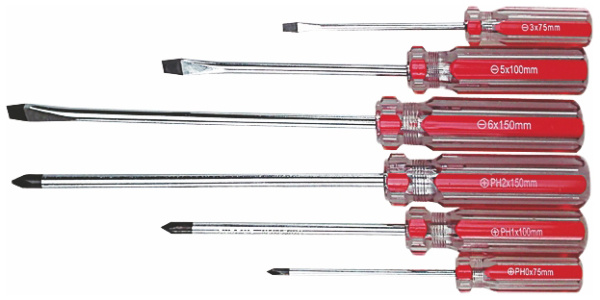 Из углеродистой стали. Хромированное покрытие. Пластиковая ручка. PH0*75, PH1*100, PH2*150, SL3*75, SL5*100, SL6*150
