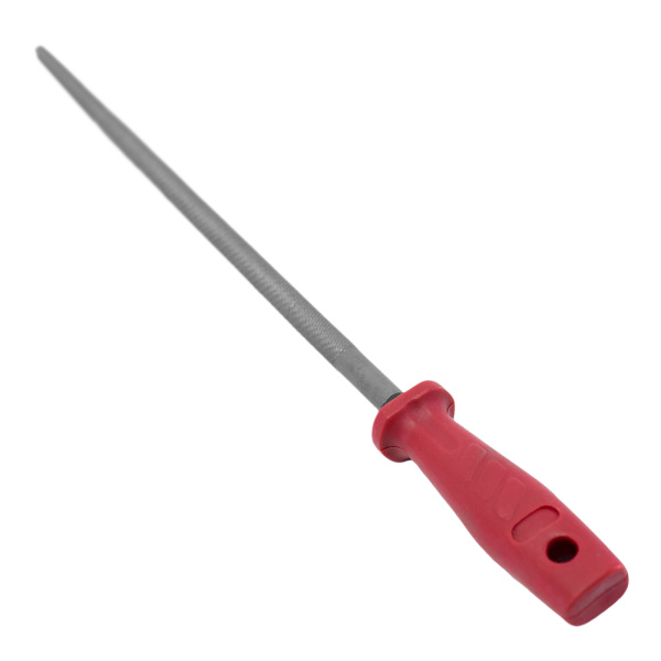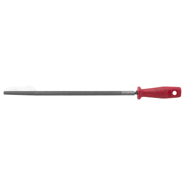 Изготовлен из инструментальной стали твёрдостью 60 HRc. Применяется для чистки контактов, снятия заусенцев, обработки различных поверхностей. Эргономичная пластиковая рукоятка.