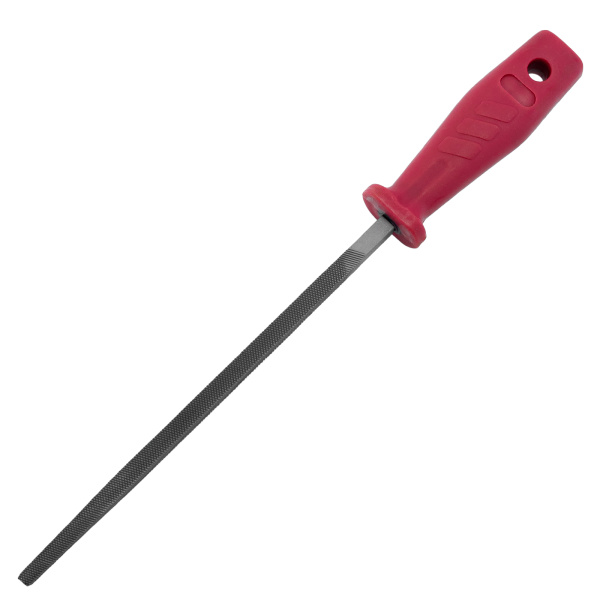 Изготовлен из инструментальной стали твёрдостью 60 HRc. Применяется для чистки контактов, снятия заусенцев, обработки различных поверхностей. Эргономичная пластиковая рукоятка.