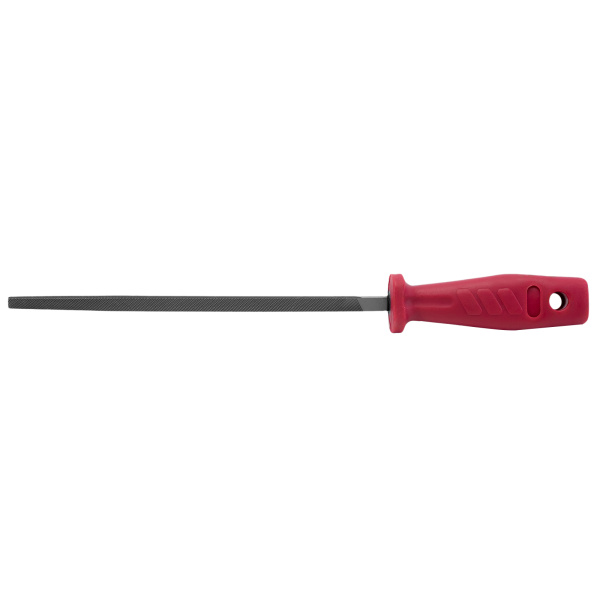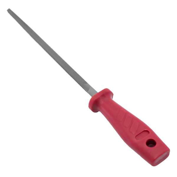 Изготовлен из инструментальной стали твёрдостью 60 HRc. Применяется для чистки контактов, снятия заусенцев, обработки различных поверхностей. Эргономичная пластиковая рукоятка.