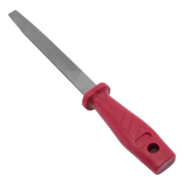Изготовлен из инструментальной стали твёрдостью 60 HRc. Применяется для чистки контактов, снятия заусенцев, обработки различных поверхностей. Эргономичная пластиковая рукоятка.